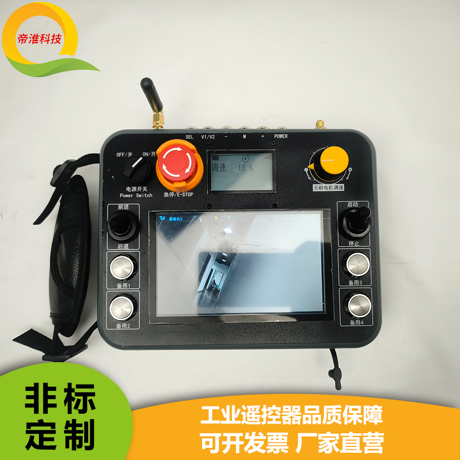 1个双轴摇杆+12个按键+1个两档旋转开关7寸触摸屏平板型工业无线遥控器